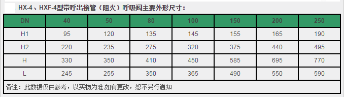 HX4帶呼出接管呼吸閥是裝在室內固定儲罐頂上的接管呼吸作用,它能對石油儲罐內外壓差進行自動調節(jié)。其性能可靠、穩(wěn)定,完全符合石油工業(yè)部SY7511-87部標準。